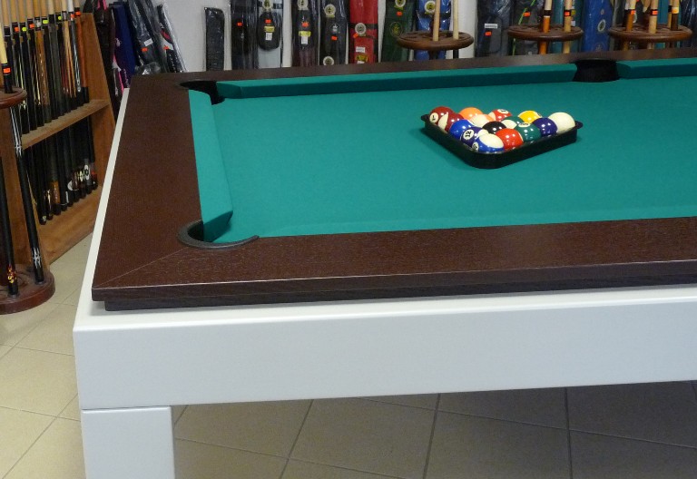 Hrací deska kulečníku: italská břidlicová deska. Břidlice je jediný schválený materiál evropských a světových kulečníkových organizací ČMBS, CEB, EPBF. Na přání je možno umístit pod břidlicovou desku elektrické vyhřívání.
